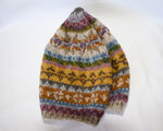 2色の毛糸を絡めて編んだフェアアイル模様です。
