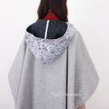 ウールビーバーとレースキルトのフーデッドポンチョコート