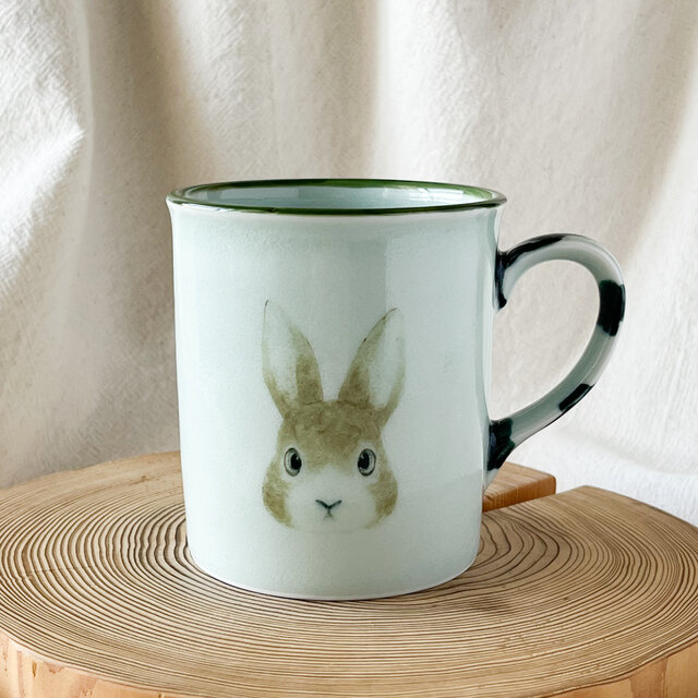 ・ハンドルが牛柄のうさぎマグ