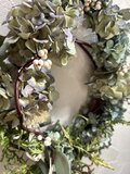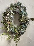 紫陽花やユーカリ、針葉樹などを柔らかな色彩に作りました。