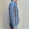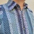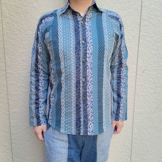 変り織りの綿生地に縞和文様図が描かれた粋なシャツ