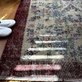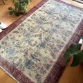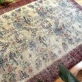 貴重116×190 幸せの青い鳥 ボタニカル シャビー トルコヴィンテージラグ