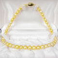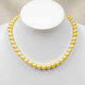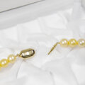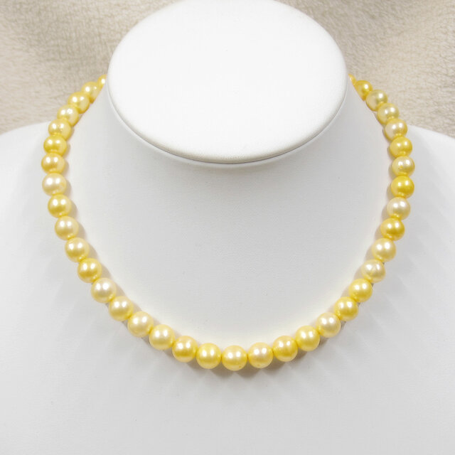 照りの美しいゴールデンカラーの粒を数本の連から選別して、丸い綺麗な粒を選りすぐって作りましたネックレスです。
