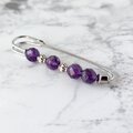 6mmの64面ラウンドカットのアメシスト4個と銀色のスペーサーをアクセントにした上品で大人っぽいストールピンです。