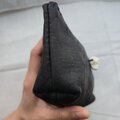 手に取った瞬間、革の質感と素材の力強さがそのまま伝わるポーチです。