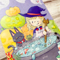はがき ポストカード イラスト 10月 October 魔女 魔法 ハロウィン Halloween 秋 Autum ハロウィンカード