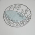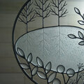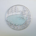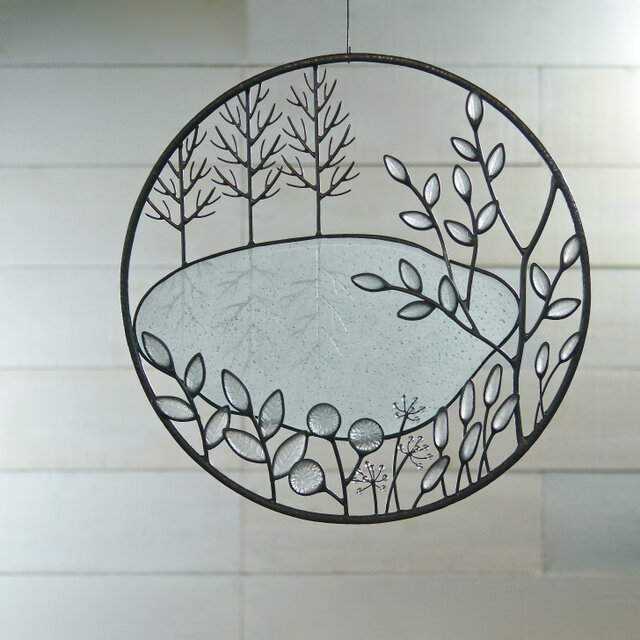 湖はアイスブルーに少しグレーを混ぜた色、周りを囲む植物は 前回の白いリースと同じ 粒子の細かい透明なガラスを使いました。