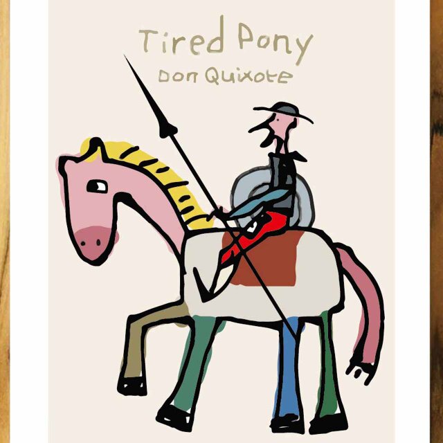 ご主人はドン・キホーテ ポニーさん疲れましたコミカルポスター。