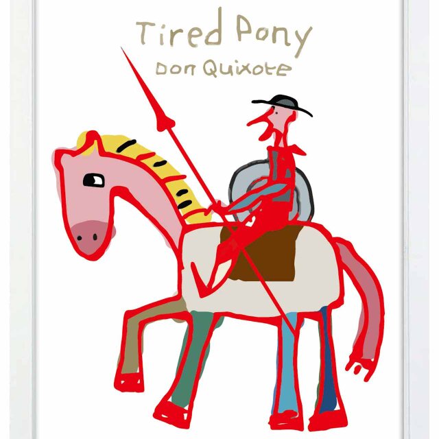 ご主人はドン・キホーテ ポニーさん疲れましたコミカルポスター レッドバージョン。