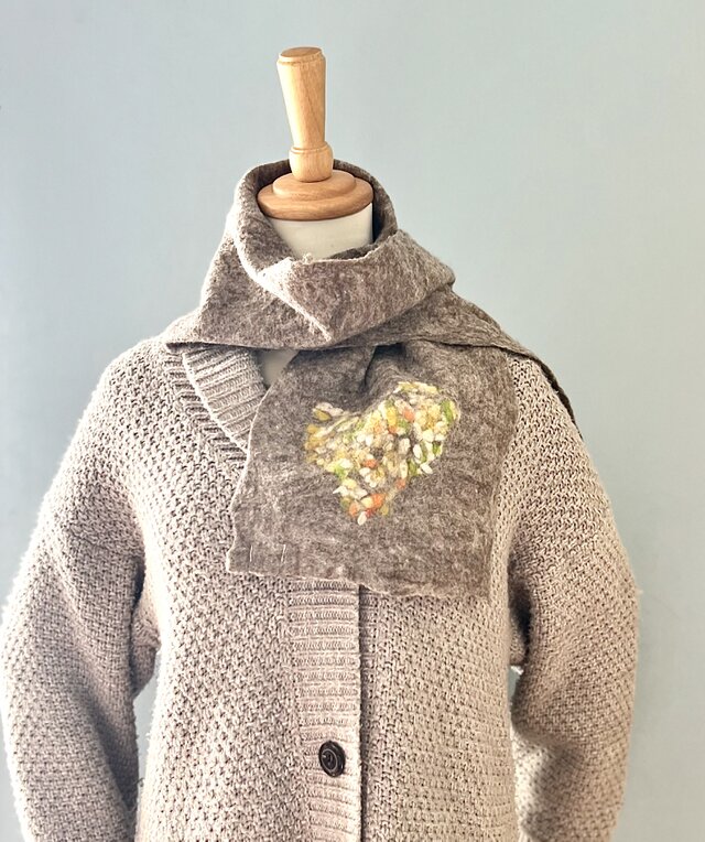 メリノウールのハートマフラー(ミディアムブラウン)