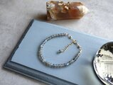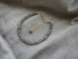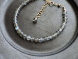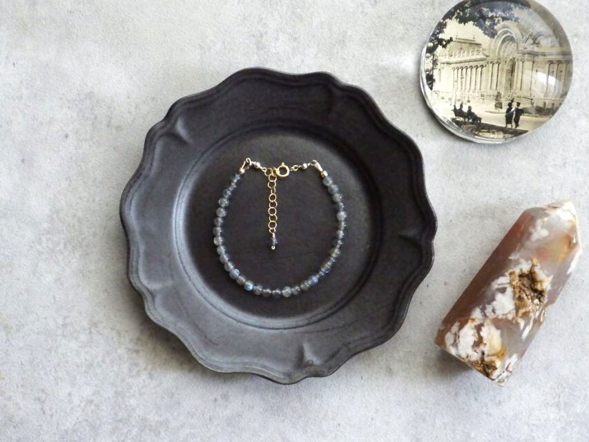 ラブラドライトの4.5mm前後の絶妙にほどよいサイズ感の粒を並べたブレスレット。ラブラドライトの神秘的な輝きをそっと手首に覗かせてください。グレー色の石地の中に青白い光沢が魅力的で大変人気の高い天然石です。グレー色の天然石なのでモノトーンの洋服にも合わせやすいです。