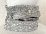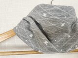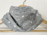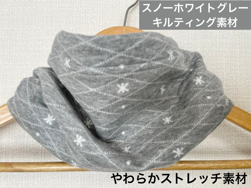 3重構造綿100%雪の結晶柄グレーキルティンググレーハンドメイドネックウォーマー
