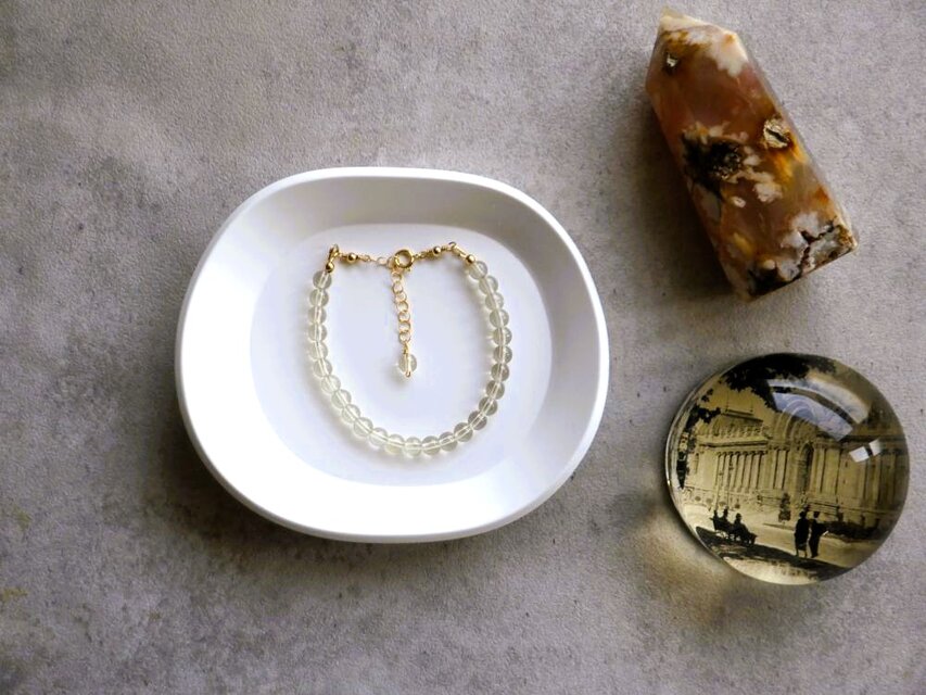 ラブラドライトといえばグレー色で神秘的な輝きが人気の高い天然石ですが、ゴールデンラブラドライトは同じ分類の天然石でありながら透明感の高い、淡い黄色の天然石でまだ珍しい天然石です。シトリンとも違う、やや落ち着いたイエロー色がとてもシックで美しいです。