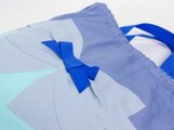 ライトネイビー、ミントカラーの配色の本体にライトブルーの大きなリボンモチーフ。