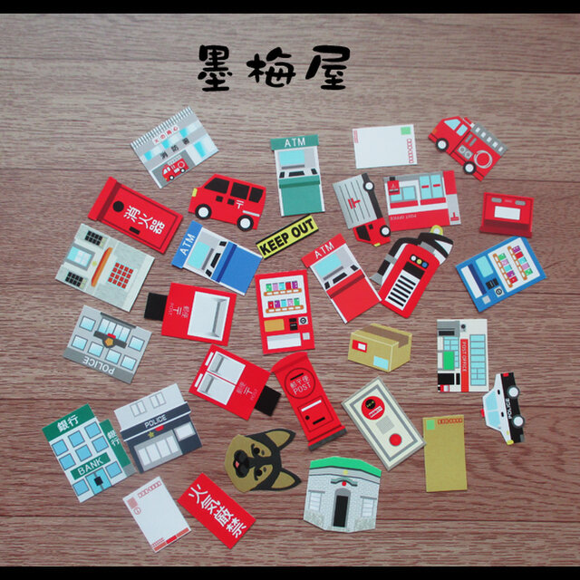 【フレークシール各柄1枚31枚入り】警察/消防/郵便/銀行