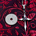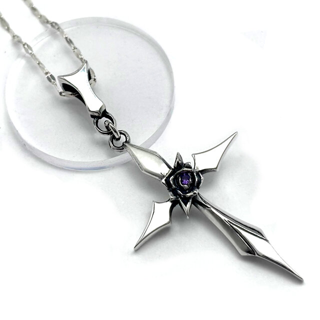 薔薇の中にアメジストをセットしたゴシックな十字架ネックレス、シルバー925