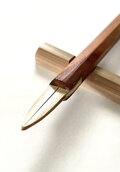 梅の木は曲がった部分が多く、非常に硬い木です。その梅の木を木軸に利用して作った竹ペンです。