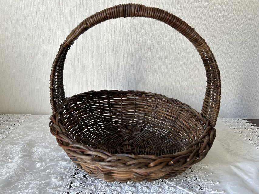 輸入品のアケビのつるで物入れのカゴを編みました。