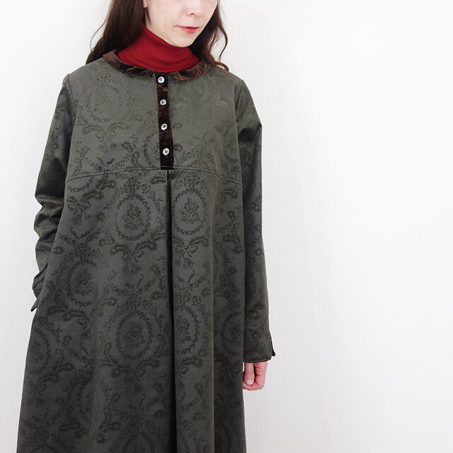 ダマスクローズ・コーデュロイとベロアのチビ襟ワンピース