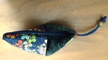 金襴生地を使って、豪華で目を引く小物入れです。