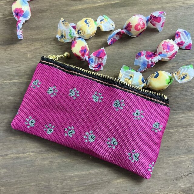 和風でカワイイ、ワンニャンな足跡柄の畳のヘリで作ったミニポーチです。