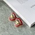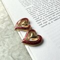 赤いエナメルのゴールドトーンオープンハートイヤリング。