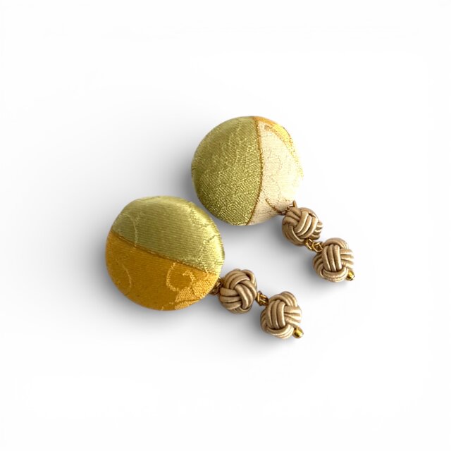 正絹振袖からつくる包みボタンピアス☆二連水引玉結びのかわいいピアス♪
