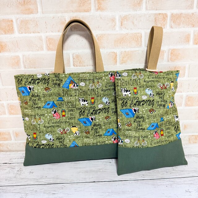 レッスンバッグ&シューズケース 2点セット 【フレンチブルドッグ★緑】