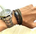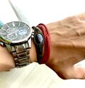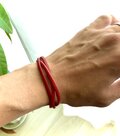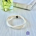 幅は約1cmと細めで、腕時計や他のアクセサリーとの重ね着けも自然に楽しめます。