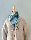 毛糸と羊毛のマーブルマフラー(ブルー系✖︎イエロー)