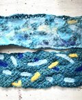 本体:鍵編みのマフラーに羊毛はそれぞれ染色した羊毛を絡めています。 (メリノウール、手作業でフェルト化しています。羊毛は化学染料です。)
