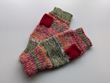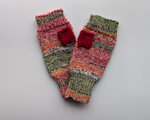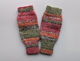 可愛らしい模様が出る段染め糸にメリノウールの単色糸を引き揃えて編んだハンドウォーマーです。