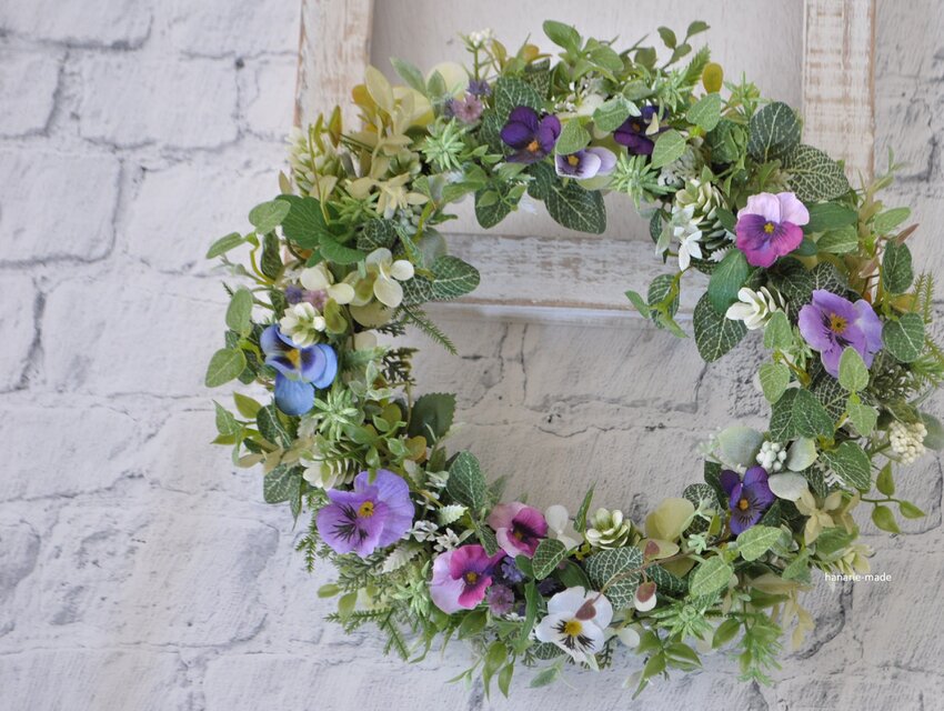 すみれ路(みち) 小春リース :すみれ グリーン むらさき 春