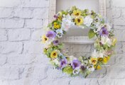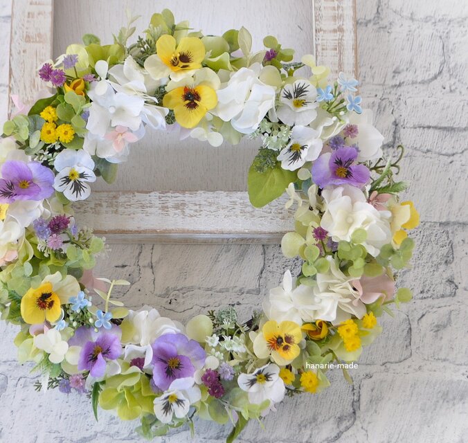 すみれワルツ リース:白 パープル 紫 黄色 パンジー