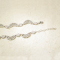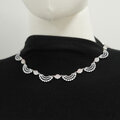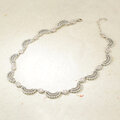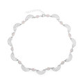 繊細な羽根のようなモチーフを連ねた、首元をやさしく縁取るデザインのネックレスです。