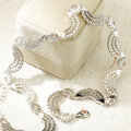 全体は華やかでありながらも主張しすぎず、優美でフェミニンな印象に仕上げられたネックレスです。
