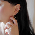 耳たぶに沿って輝くアーチから、しなやかで細身のスネークチェーンがゆるやかに垂れ下がり、動くたびに優美な揺れを生み出します。