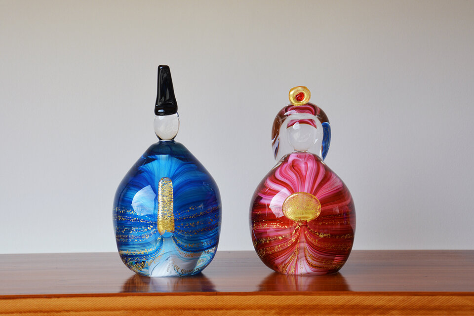 丸い姿がかわいらしいガラスのお雛様です。