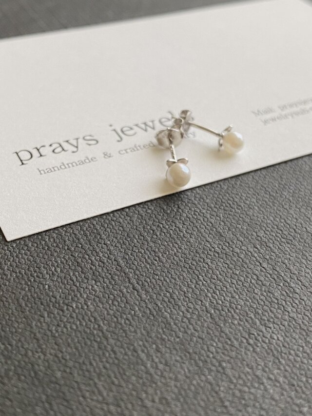 Silver925 Akoya3.5mm 小さなアコヤベビーパールブーケスタッドピアス