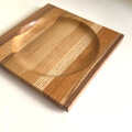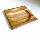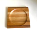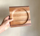 しっかりした硬さのある広葉樹をはぎ合わせた、縞模様が美しいプレート。