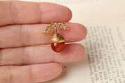 素敵なドングリのハットピンでした!ずっと気になっていた作品を思い切って購入して本当によかったです。真鍮が高級感があってタイガーアイの色味にうっとりします。同封された作品の取り扱い説明書に、中に本物の植物が入っています。と書いてあって、いつでも枯れない本物の植物を身に付けておでかけできるなんて、素敵でワクワクします。とても気に入ったので大切に使わせていただきます。ありがとうございました!