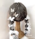 透け感のある「刺繍の蝶々」とふわふわの「羽飾り」を組み合わせたトレンド感たっぷりの髪飾りセットです。