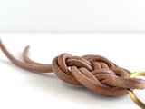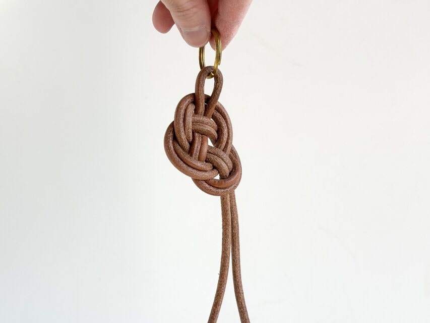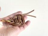 「水引」から着想を得た結び方が特徴で、贅沢な一本革構造になっています。
