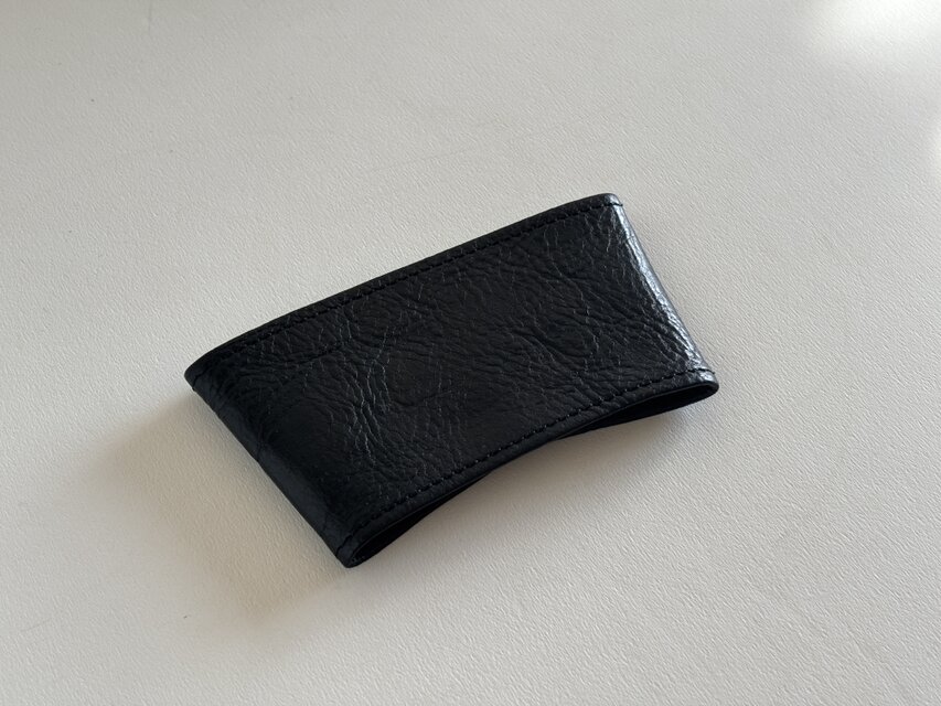 携帯時の厚みを抑えつつ、コバ ( 素材の切り口 ) の毛羽立ちを防ぎます。