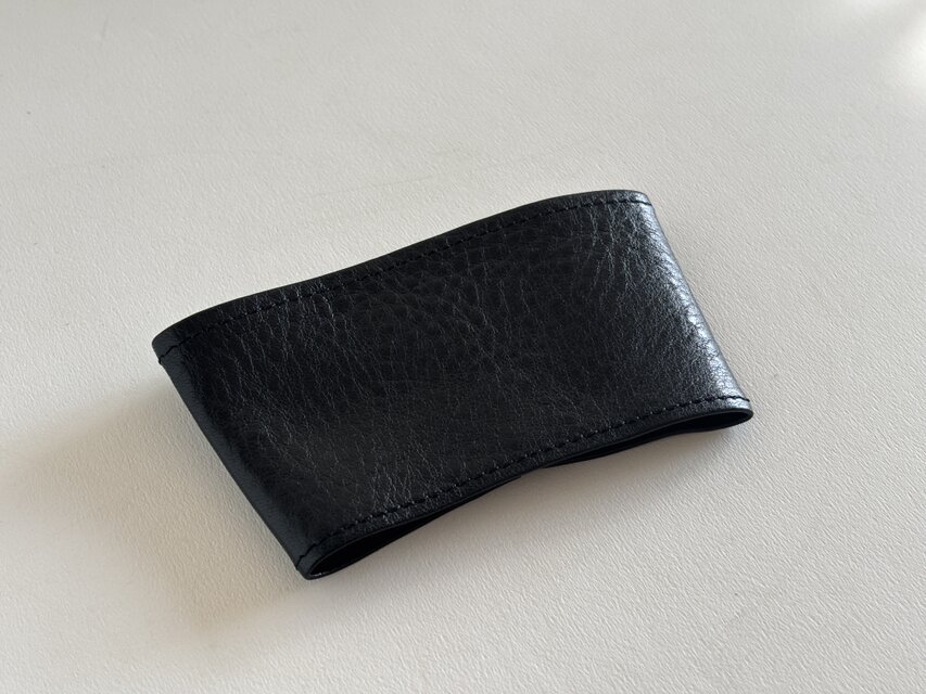 携帯時の厚みを抑えつつ、コバ ( 素材の切り口 ) の毛羽立ちを防ぎます。
