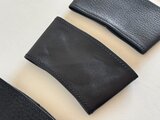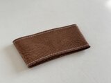 装着部は、革を薄く漉いて折り返す「ヘリ返し」という技法を施し、耐久性を高めた構造になっています。