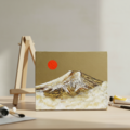 「旭日黄金富士」は、神聖で格調高い富士山の姿を、豪華な金色の背景とともに描いた特別な油絵作品です。サイズは横273mm × 縦220mmで、豊かな色彩と立体感が生み出す生命力が感じられる作品となっています。
