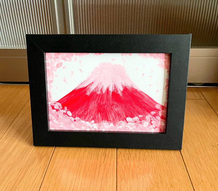 春の訪れ 桜吹雪赤富士 縁起物(幸運を引き寄せる)原画ハガキサイズ