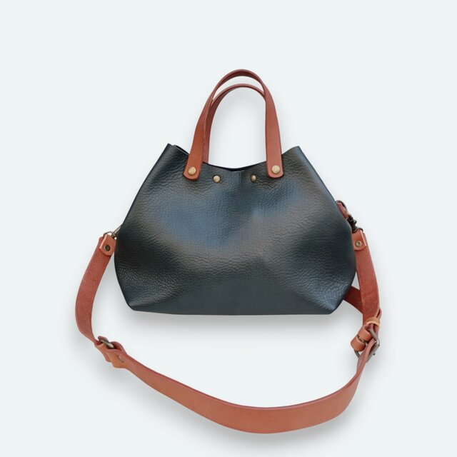 2つのデザインを楽しめる2wayレザートートバッグ(S) ネイビー【OR3019S】