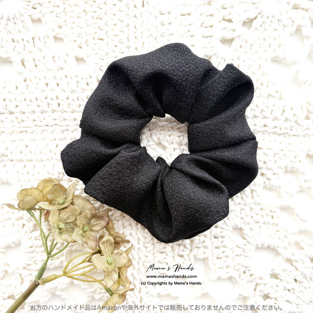 ⭐️《絹 シルク ウール》☘️フォーマル 黒 ブラック 冠婚葬祭 シンプル シュシュ ヘアゴムです♪